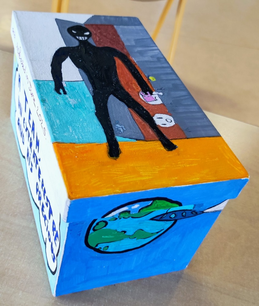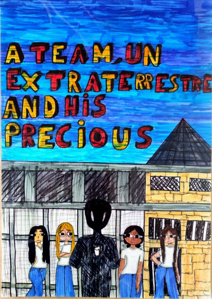 Suite à cette sortie, en fin d’année scolaire, chaque classe a réalisé en cours d’anglais et d’espagnol un petit film basé sur « Asteroid City » de Wes Anderson. Les élèves ont également créé la boîte du film, dans laquelle ils ont placé quelques photos de la sortie à la Cinémathèque et des accessoires fabriqués pour le tournage. Ils ont aussi imaginé et dessiné l’affiche de leur film.